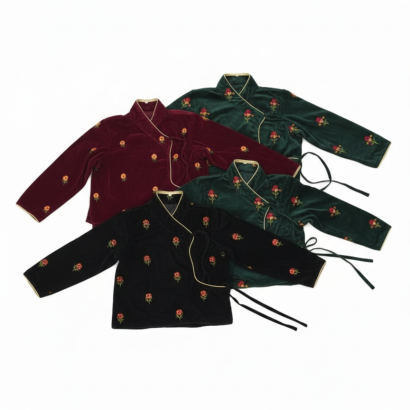 • Style: Short-sleeved or sleeveless, cropped top (bodice).